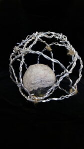 « Puis on en a changé le sens a notre manière. La production est une boule en journal, qui a été traînée dans les rues d’Italie puis enfermée pour ne plus l’utiliser et pour la montrer ainsi dans un lieu d’exposition aux spectateurs. Elle a été conçue avec du fil de barbelé sculpté autour de la boule de papier journal pressé. Mon groupe et moi avons eu l’idée de refaire cette boule en papier mâché et en l’utilisant dans les couloirs du collège pour jouer à la balle. Puis on l’a enfermée en tressant du fil de fer malléable autour et en laissant la boule « respirer « , bouger à l’intérieur. Nous avons ménagé un trou assez grand pour pouvoir la ressortir. Ce qui est une manière de prendre des distances avec l’oeuvre originale, et d’en modifier son sens. Personnellement, Cela ne m’a rien apporté car je n’ai pas envie de préparer le prochain oral d’entraînement dessus mais c’était génial pour la culture générale ! »
