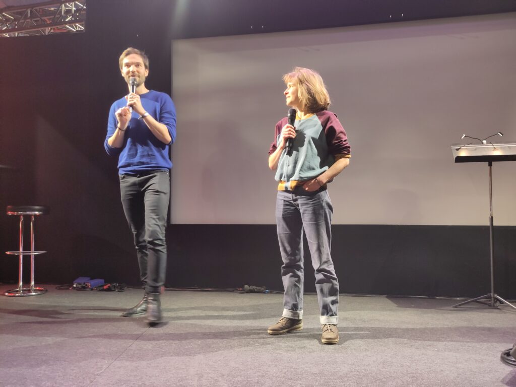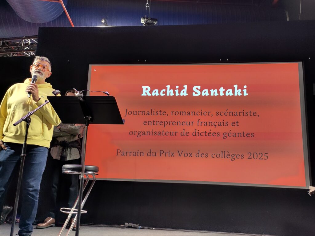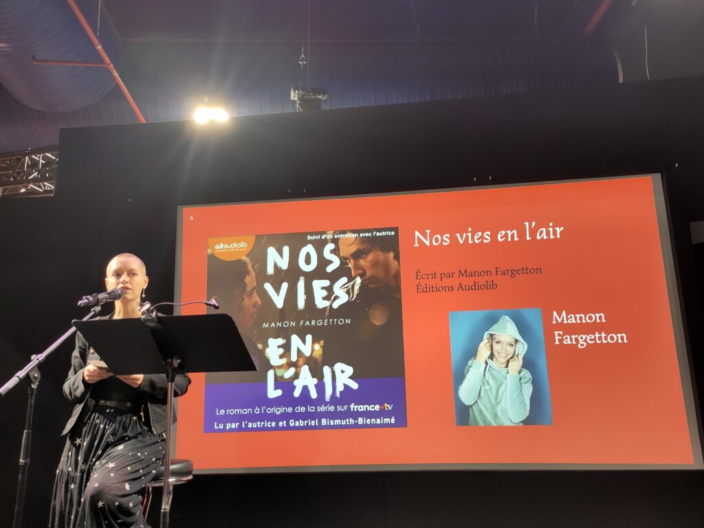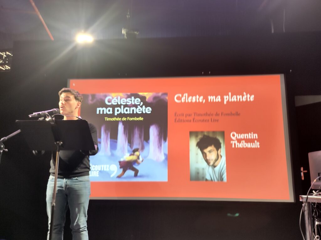 Arrivés au Salon du Livre, nous nous sommes rangés deux par deux pour prendre moins de place. Le Salon était très grand et plein de monde. Dommage que nous n’ayons pas pu prendre de photos et que la plupart des livres étaient trop chers selon nous. Nous avons d’abord assisté à la réunion du Festival du Prix Vox, auquel notre classe participe. D’abord, on nous a expliqué le projet Vox plus en détail. Le but principal était de rencontrer les auteurs des livres qui ont été choisis pour participer à ce festival, ainsi que des comédiens. Des acteurs ont lu certains des livres sélectionnés pour le Prix. La première à avoir lu était l’autrice de Nos vies en l’air elle-même, Manon Fargetton, et le deuxième acteur a lu Céleste ma planète de Timothée de Fombelle (il faisait la voix du narrateur de l’histoire).