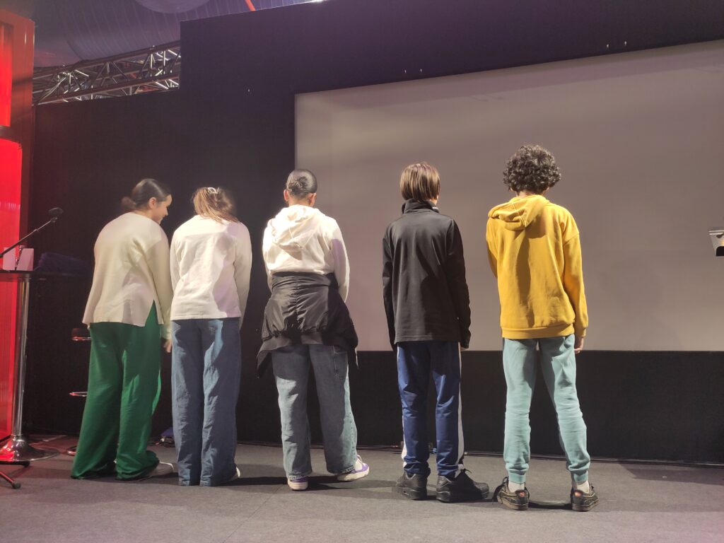 Nos vies en l’air était un peu traumatisant dans ses thèmes (harcèlement, diffusion d’images intimes) mais nous avons quand même trouvé que les passages lus étaient intéressants. Ensuite, cinq élèves de notre classe ont été invités à monter sur scène pour faire un jeu avec les comédiens : Mateos, Ilyan, Shaïnez, Jullie et Lyana.