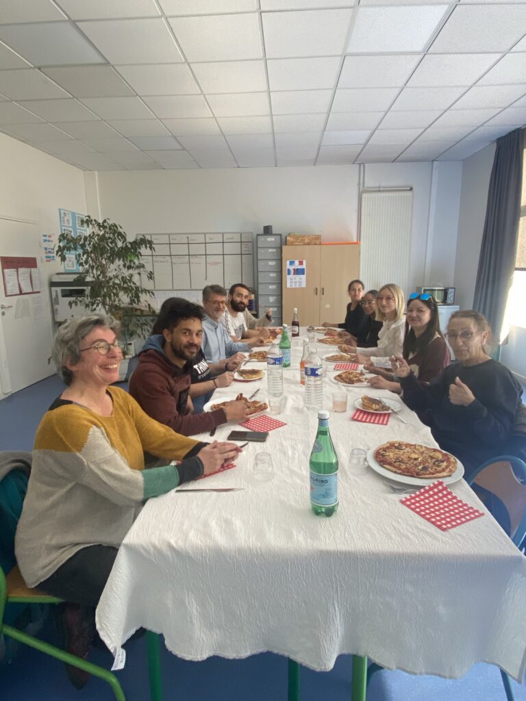 Au menu, bien sûr, pizzas: reine, ou chèvre-miel. Et comme au Délices des A on est inclusifs, nos apprentis avaient même préparé des quiches pour ceux qui voulaient la dolce vita sans la pizza. Une fin gourmande sur un moelleux au chocolat, une recette que nos élèves maîtrisent parfaitement.